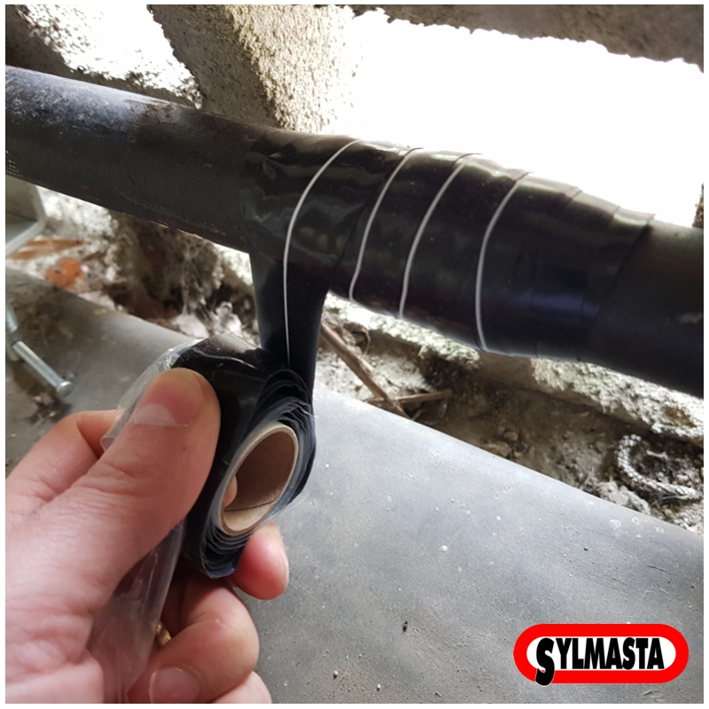 Self-amalgamating waterproof tape fuses to form solid rubber band which seals live leaks