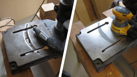 A drill base stand undergoes refurbishment and repair with Industrial Metal used to seamlessly fill in a significant gouge caused by a previous owner’s misuse