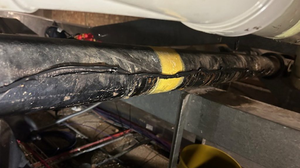Using a standard sealant gun, CrackSeal Cast Iron Pipe Sealant was extruded directly into the crack along its entire two-metre length until it was totally filled.