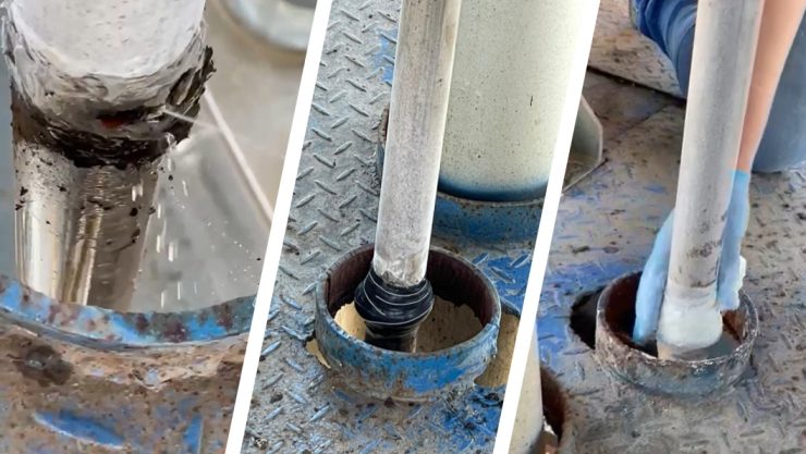 SylWrap HD is a composite repair wrap containing a water activated resin. As it was wrapped and smoothed around the Wrap & Seal, it cured to form a rock-hard protective sleeve over the pipe.