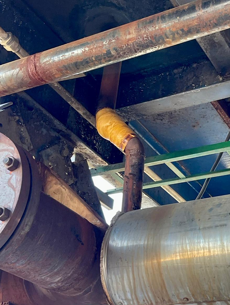 Numerous repairs had since been made by the sugar mill using their stock of Contractor Cases. These included 90-degree elbow bends in elevated pipelines and a particularly challenging Y-joint leaking from the exact point where three separate pipes connected. Most of these pipes carried hot water.