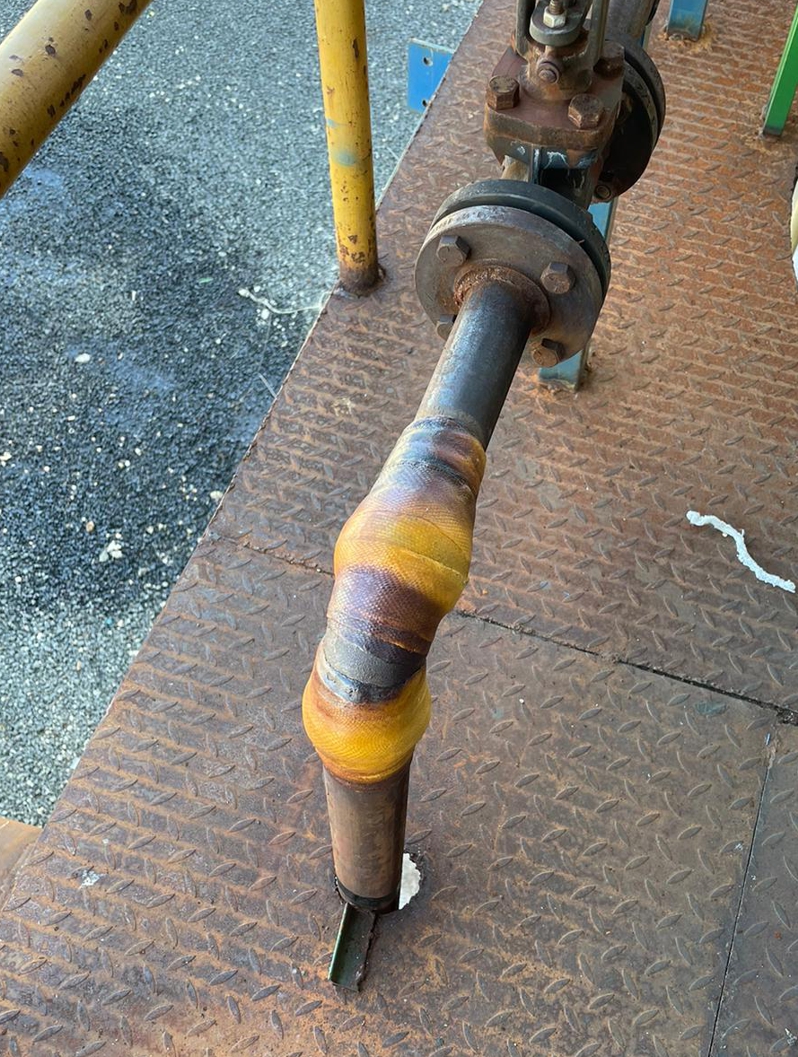 Once the engineer was satisfied the leak had been fully arrested and alcohol was no longer escaping, a SylWrap HD Pipe Repair Bandage was applied over the top to reinforce the Wrap & Seal.
