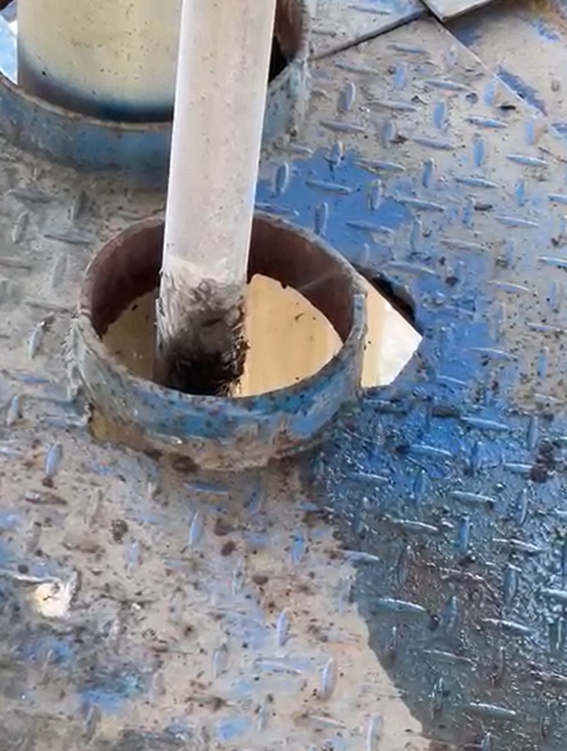 It ran vertically up the tower, with the leak developing in a weakened section as the line passed through a circular hole in one of the upper floors. Alcohol juice was left spraying through the pinhole at around two bar pressure.