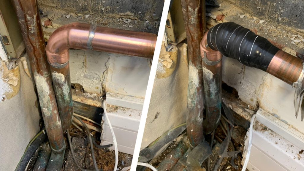 Soldering saviour – Wrap & Seal fixes a long-term leaking copper pipe joint caused by shoddy soldering