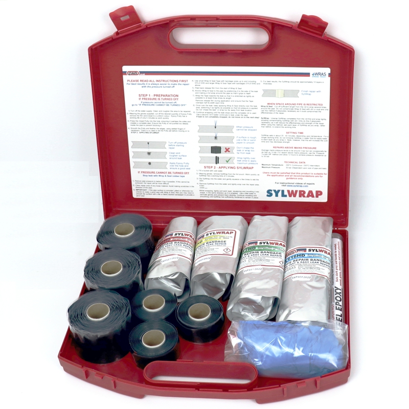 Easy-to-store Case containing enough Wrap & Seal and SylWrap for multiple live leak repairs
