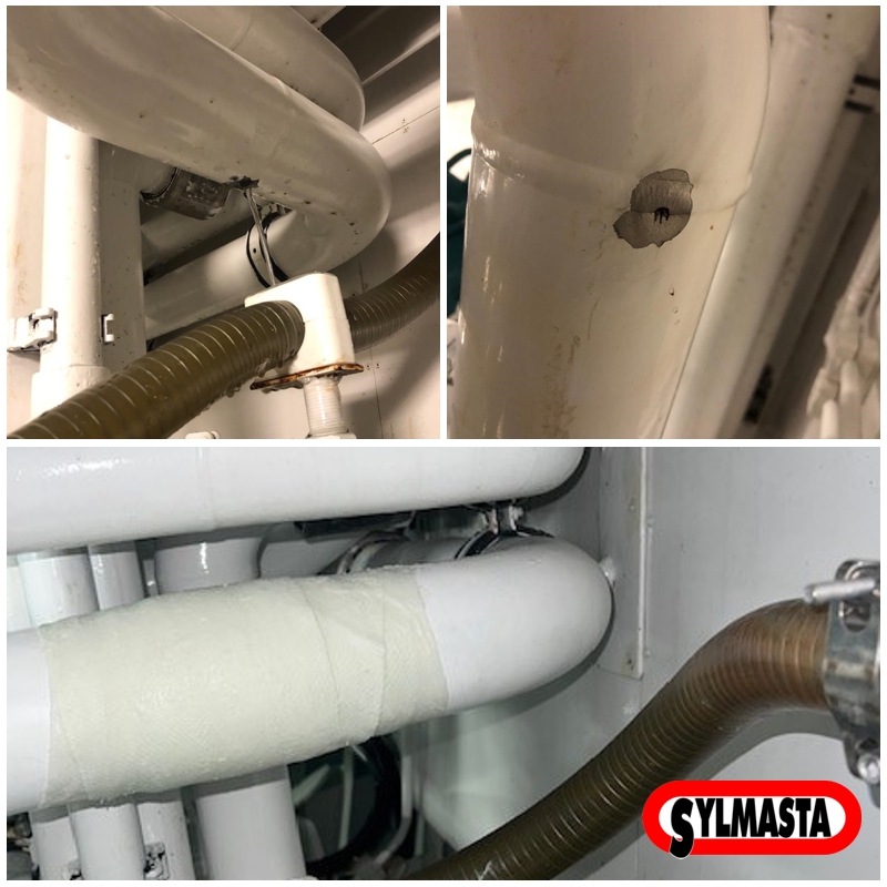 The superyacht were sent a SylWrap Pipe Repair Contractor Case, from which Wrap & Seal Pipe Burst Tape was used to seal the leak. Wrap & Seal is a self-amalgamating repair tape with a unique tapered profile which stretches by three times its length.