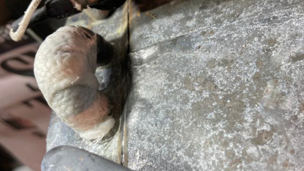 Defect Split in copper pipe caused by freezing temperatures