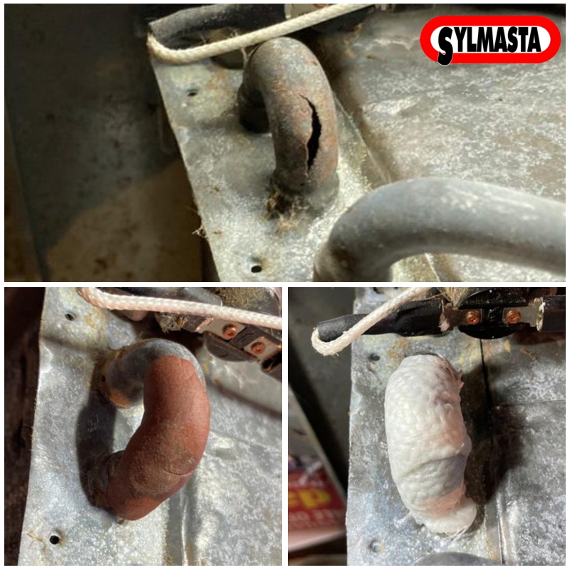 It had been established that the smallest Standard Pipe Repair Kit (SYL-106-NP) was ideal for application because of both the cramped space inside the unit and the difficult shape of the pipework. There were many bends which were unrepairable with a clamp.