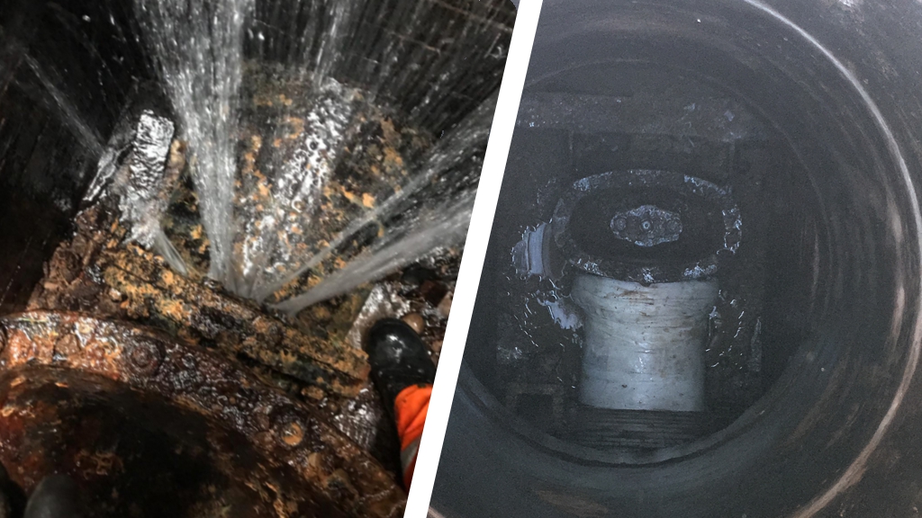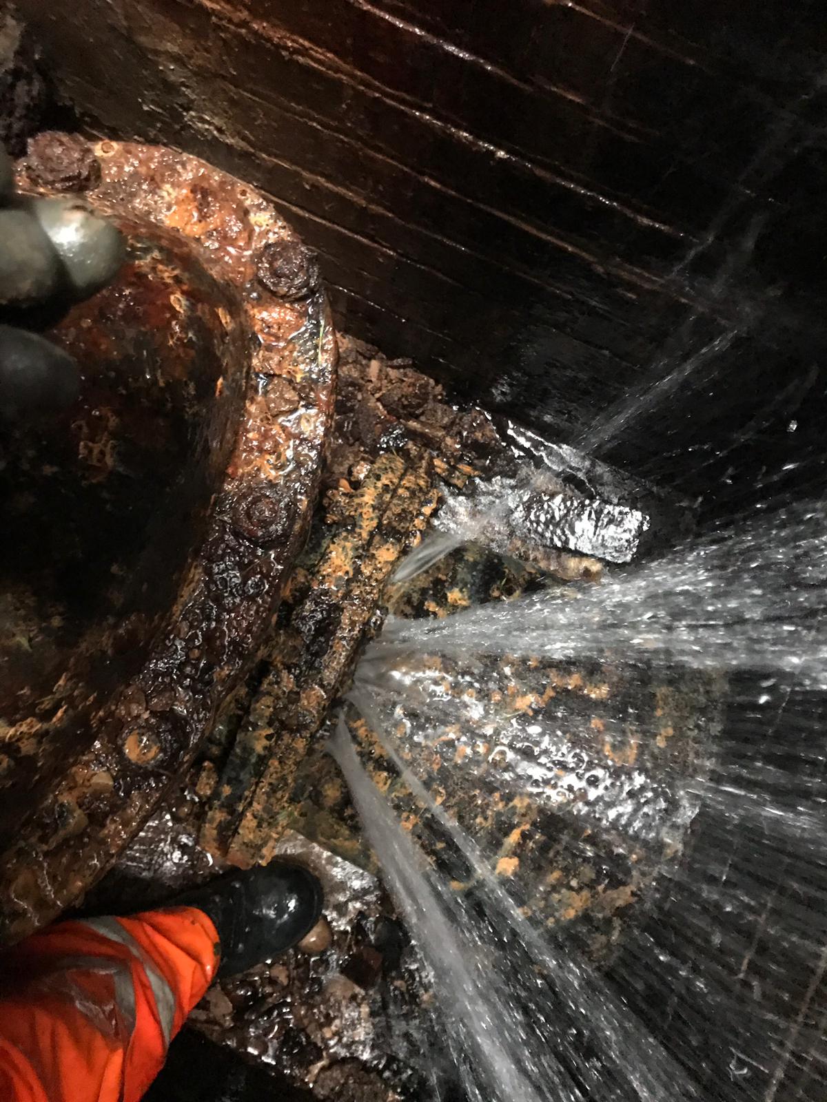 The large split across the diameter of the 400mm underground carbon steel water main had been considered unrepairable for 15 years for several reasons. The normal method for fixing a pipe on the underground water network would be to use a hefty pipe repair clamp, but that was not possible due to the severely confined space the main was located in.