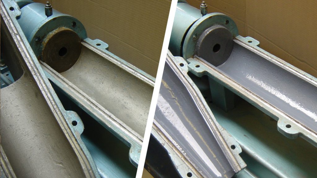 Because the alumina beads make cured WearShield a slightly rough material, it was decided to topcoat with more Ceramic Brushable. The ultra-smooth, low-friction finish provided by Ceramic Brushable would improve flow through the pump housing, making it more efficient once it went back into service.