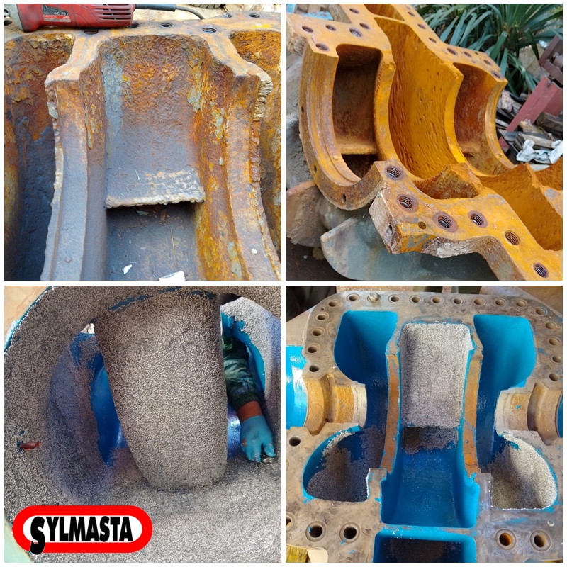 Years of extracting river water containing sand, silt, stones and other debris had left pump housing at a copper mine in Bulgaria heavily damaged. When the cost of fabricating and installing a replacement was deemed too expensive, the mine instead made a pump housing repair with technical support from a Sylmasta approved supplier in the country.