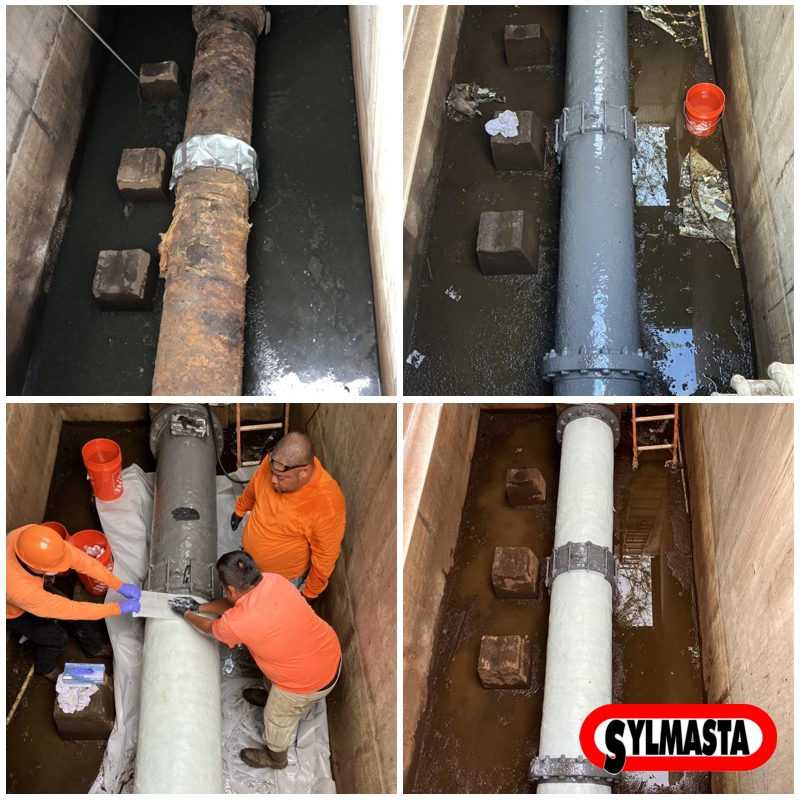 An engineering company in Hawaii repair and refurbish a severely corroded 30-metre section of 450mm ductile iron sewer force main inside an underground vault. The application used three stages of the Sylmasta Pipe Refurbishment System and rectified a previous repair attempt which ended up sandblasting a 75mm round hole in the pipe.