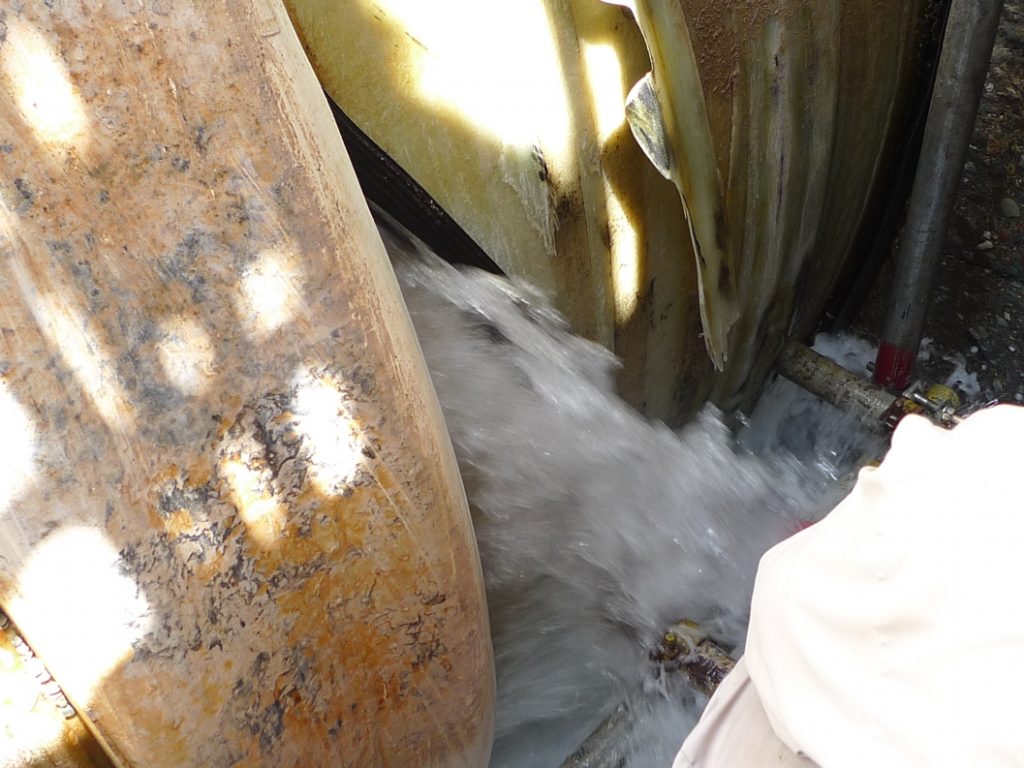Even though flow was immediately shut off, the amount of water passing through the pipe meant that the chamber housing the problem section became flooded and had to be drained.