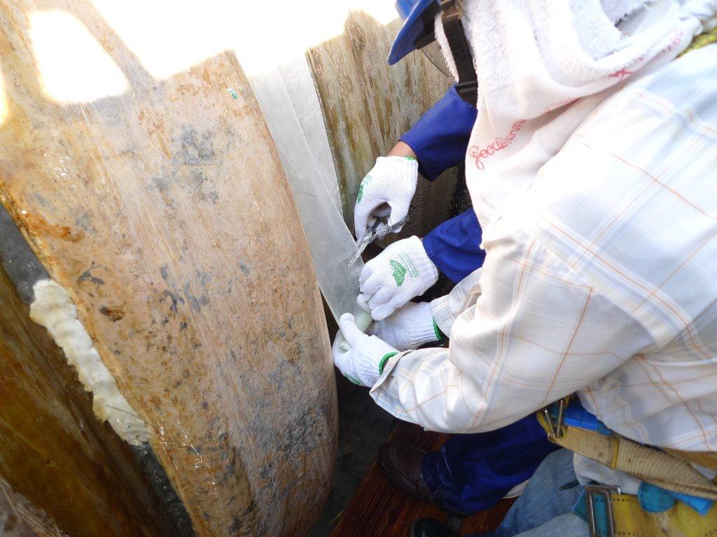 However, with the bottom of the FRP pipe remaining buried, it was not possible to wrap SylWrap HD around the line in this application. Even if the line had been completely accessible, its size would have made effective wrapping extremely difficult.