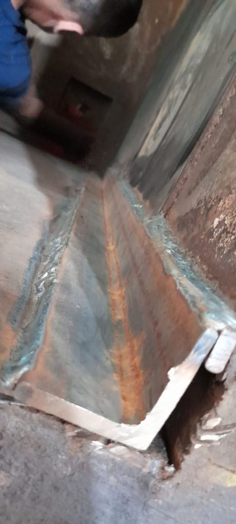 After a long time in service, the tank was suffering from corrosion. The damage was particularly heavy in the corners. The factory decided to repair the chromic acid tank, which involved installing welded reinforcements to each inside corner.