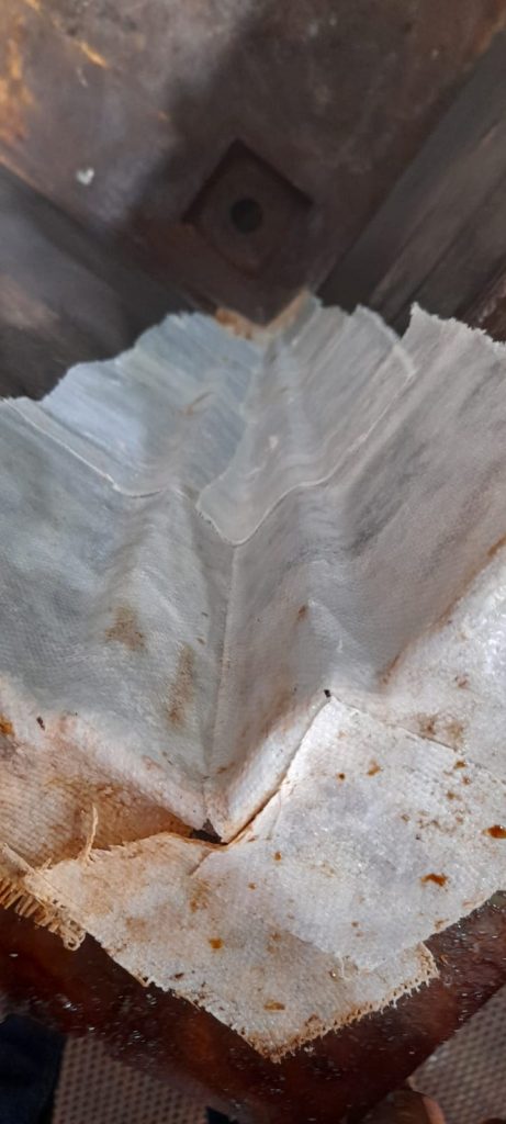 SylWrap HD was applied to all four corners of the tank in this way. Within 10 minutes of application, it had completely set to encompass each welded corner and cover any gaps or holes which may have otherwise been left exposed.