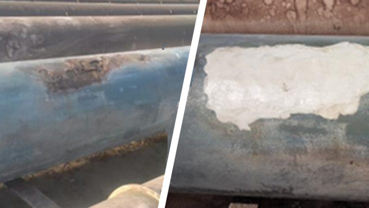 The steel pipe was suffering from a 600mm section of very heavy corrosion to its external surface. It was only a matter of time until the pipe was breached, at which point the site would have been forced to shut off the line whilst either the leak was sealed or a new section was installed.