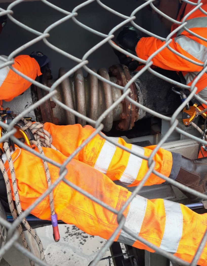 On the day of the repair, the expansion joint had contracted to the point of failure. Whilst this meant the engineers were not battling a stream of water, it reduced the available space between the bellows into which Wrap & Seal could be applied.