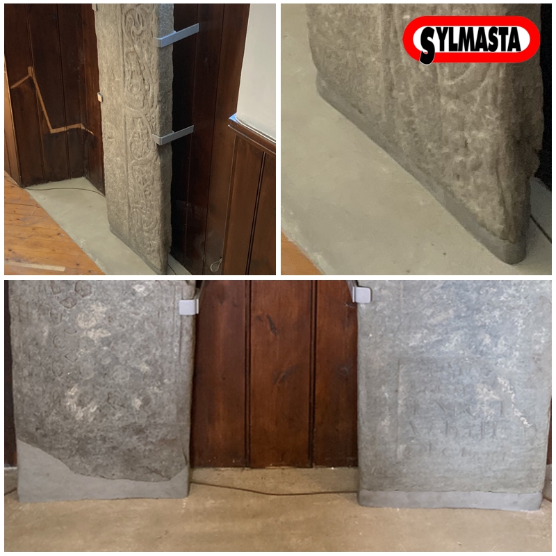 The damaged base of the Dalmally Burial Stones undergoes repair using Sylmasta AB Original Epoxy Putty