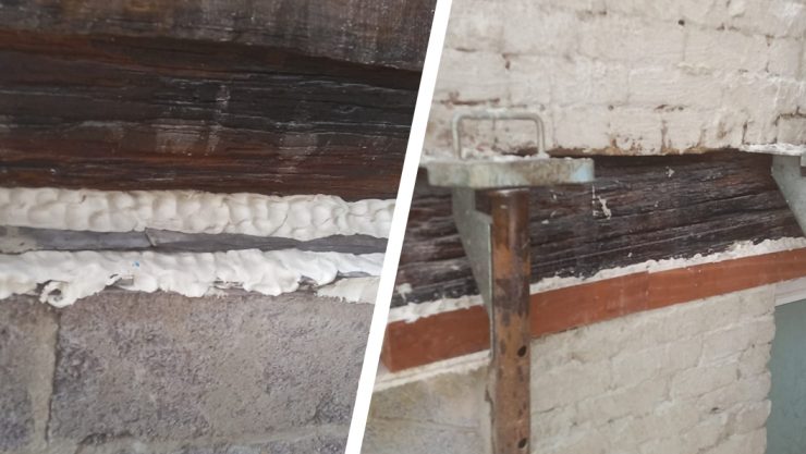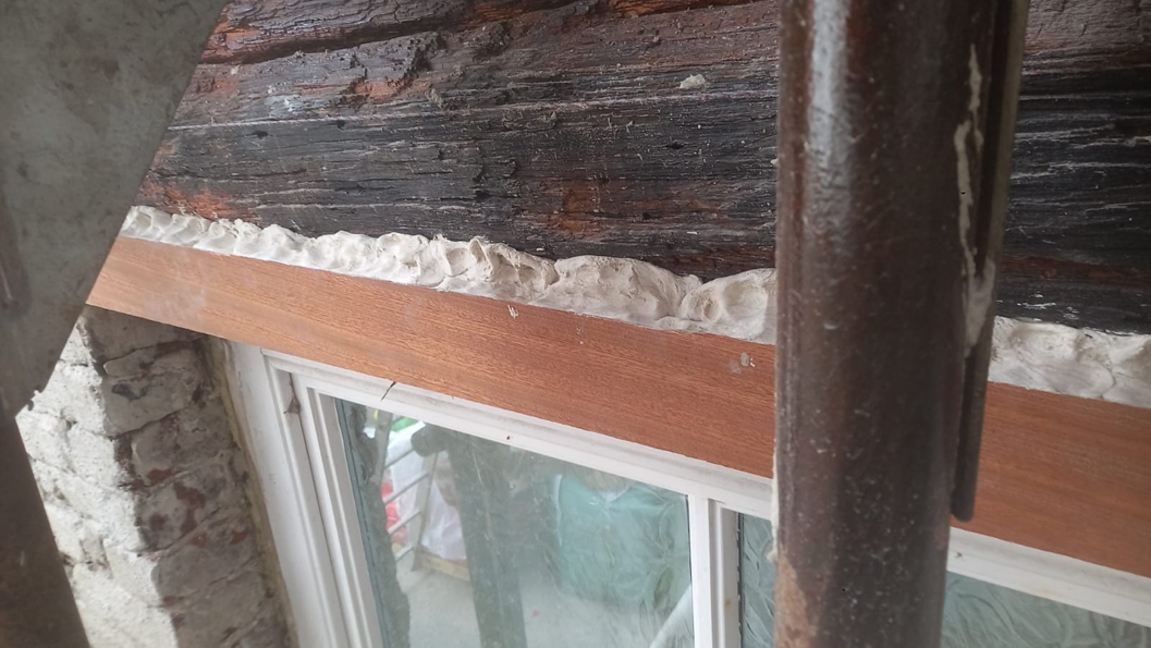 Sylmasta AB Original Epoxy Putty is used to repair a rotted wood beam in a home renovation project. 30kg of putty filled large voids in the ancient oak beam caused by rotting, helping create a flat surface which enabled the outside of the property to have its exterior appearance improved by rendering.