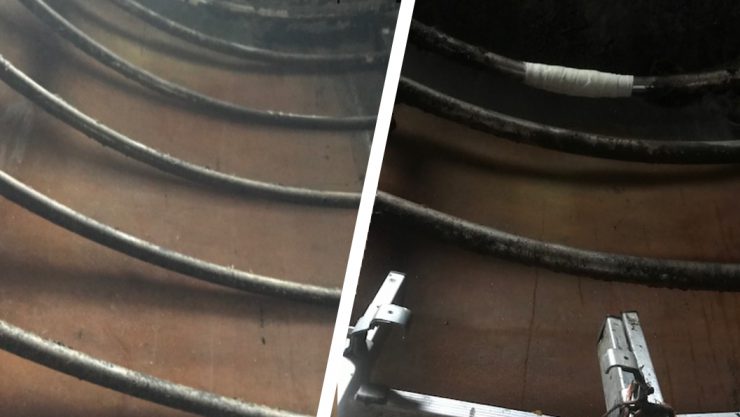 The materials in the SylWrap Universal Pipe Repair Kit are temperature resistant to 200ºC, enabling the repair to withstand conditions within the heating tank. To further protect the pipe, a steel deflector plate was tied to the top of the SylWrap HD Bandage.